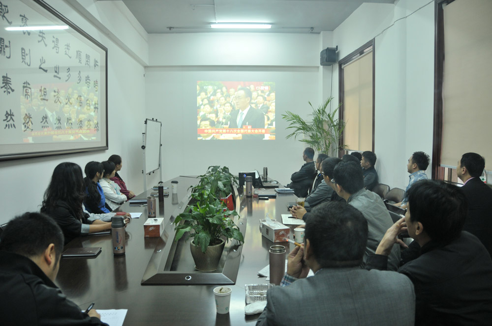 11月8日,中國(guó)共產(chǎn)黨第十八次全國(guó)代表大會(huì)在人民大會(huì)堂勝利召開(kāi),高投、通道公司黨支部組織全體職工觀看黨的十八大現(xiàn)場(chǎng)直播,公司總經(jīng)理李蛟、常務(wù)副總經(jīng)理錢建人、黨支部書(shū)記陳金社等參加。